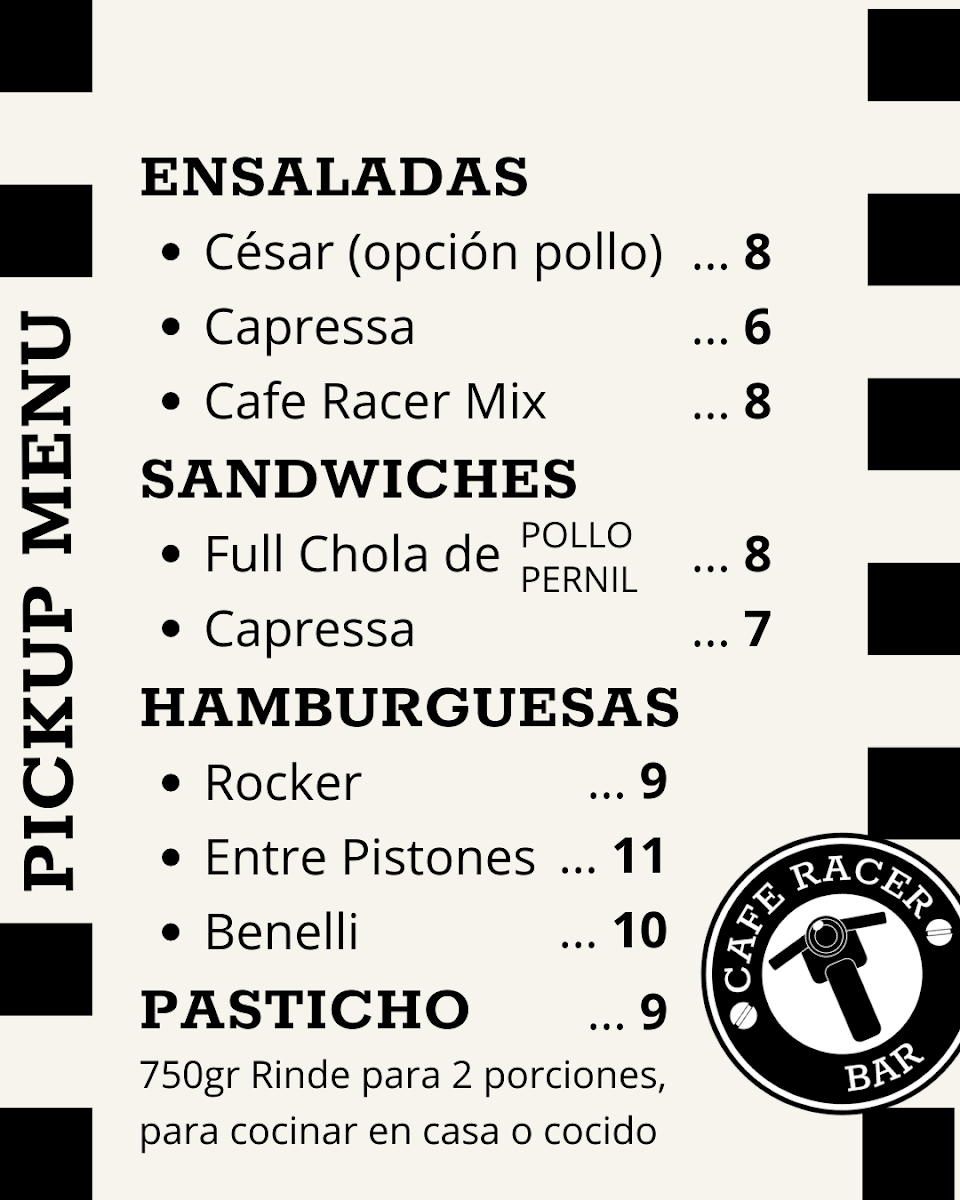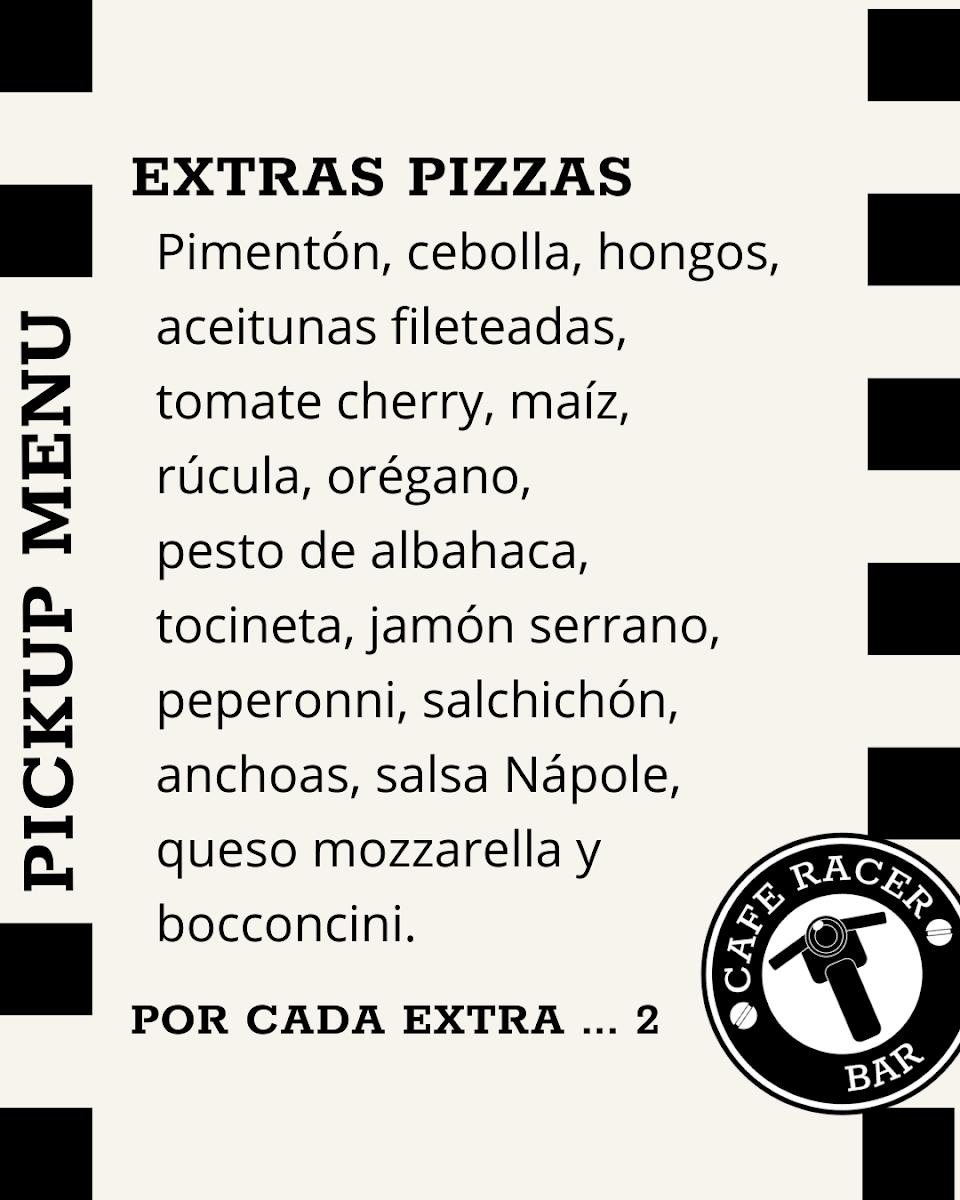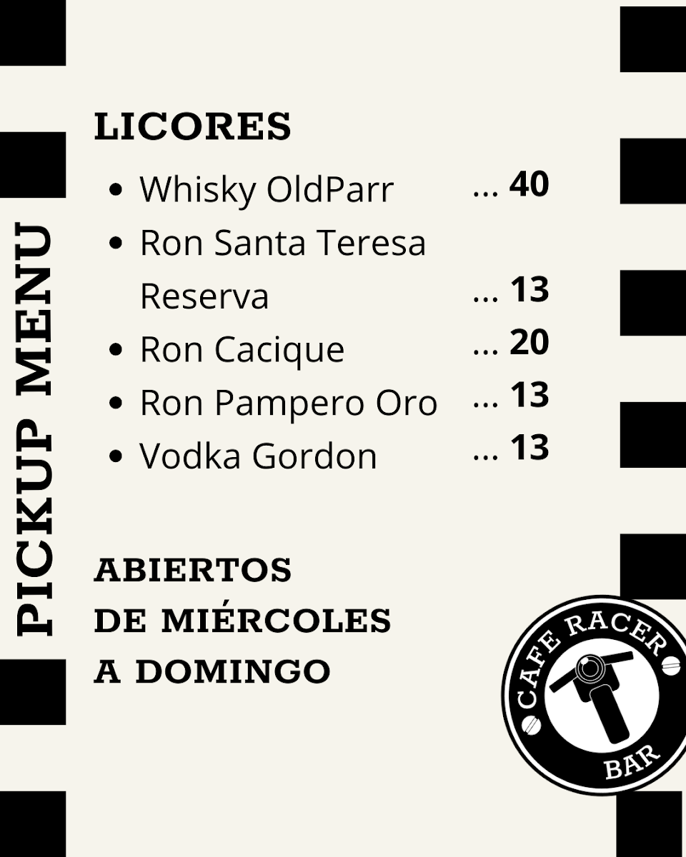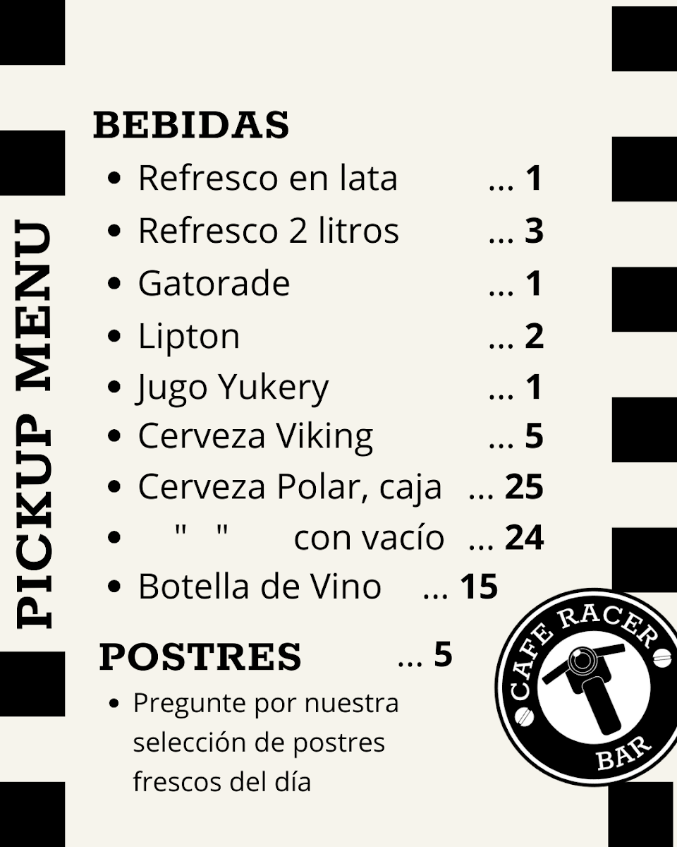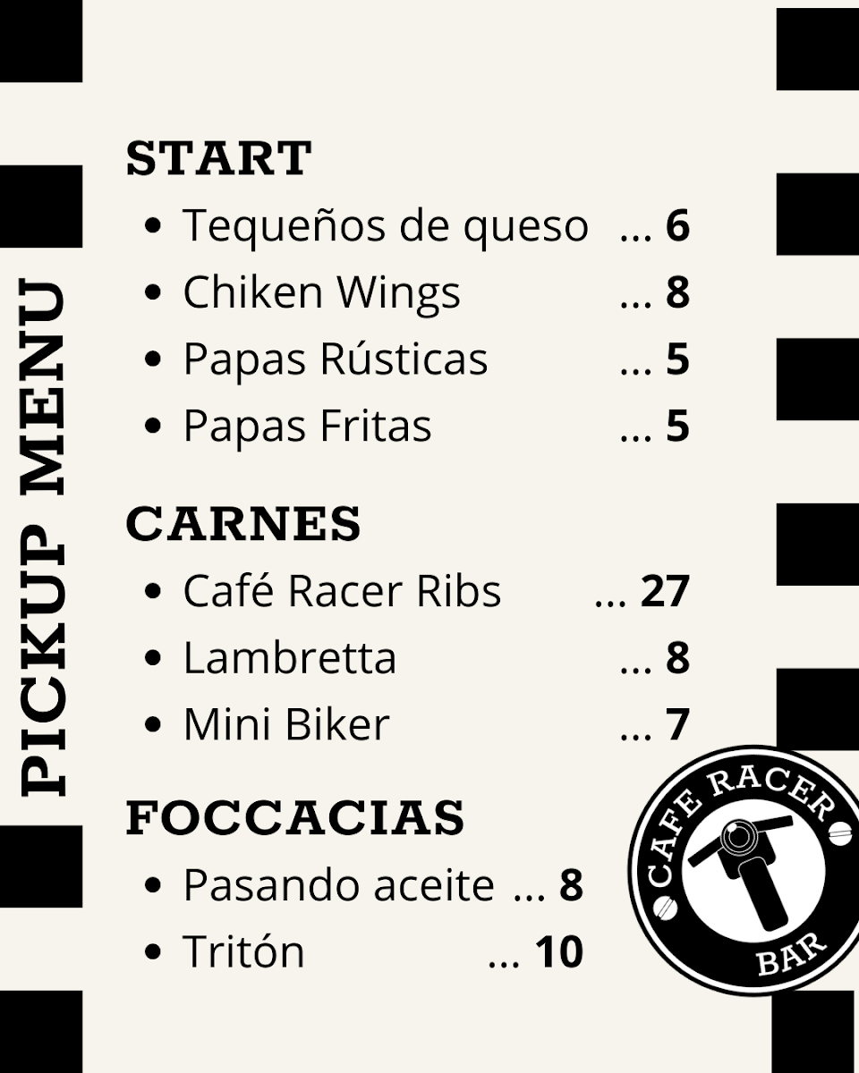 Café Racer Bar Menu invites you to explore a mix of hearty eats and laid‑back flavors right off Avenida Principal Las Minas in Casa S/N Sector Las Minas, Sector Industrial, San Antonio de Los Altos, Miranda, Venezuela. Picture this: after wandering in from the street, you’re greeted by the aroma of wood‑fired pizzas, juicy burgers, crispy sides, and refreshing drinks that reflect casual comfort with a twist. The vibe here effortlessly blends classic favorites with creative takes, so whether you’re in the mood for something familiar or curious to try the chef’s special creations, there’s something to catch your eye.