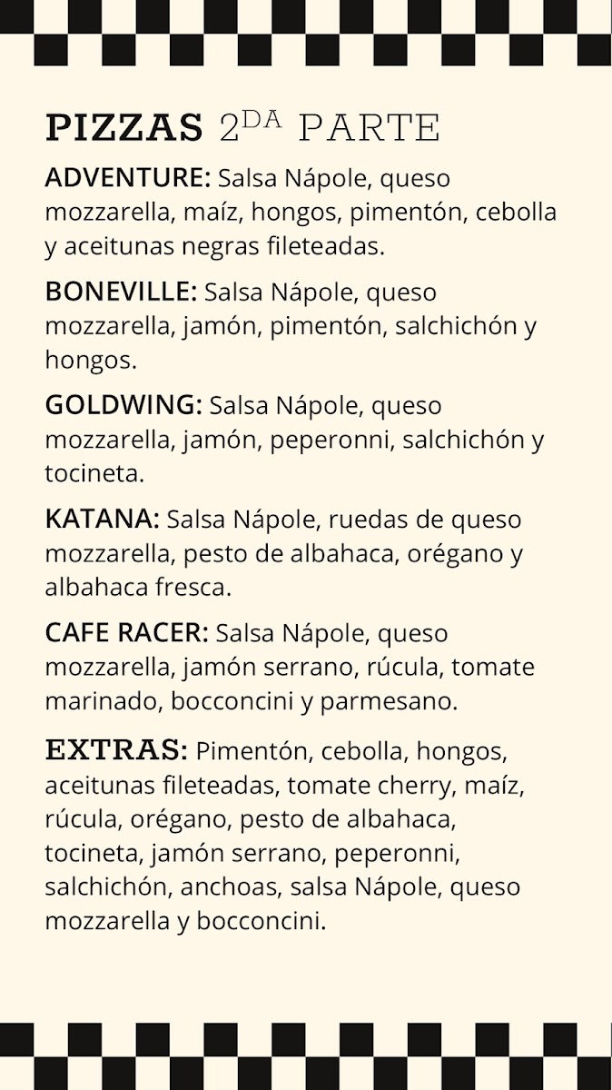 Flipping through the selections feels like getting a friend’s recommendation - honest, tempting, and easy to navigate. Expect fun names and bold flavors that match the energetic, motorcycle‑enthusiast spirit of the space, with options that satisfy lunch cravings, dinner plans, or just a chill hangout with friends over great food and drinks.